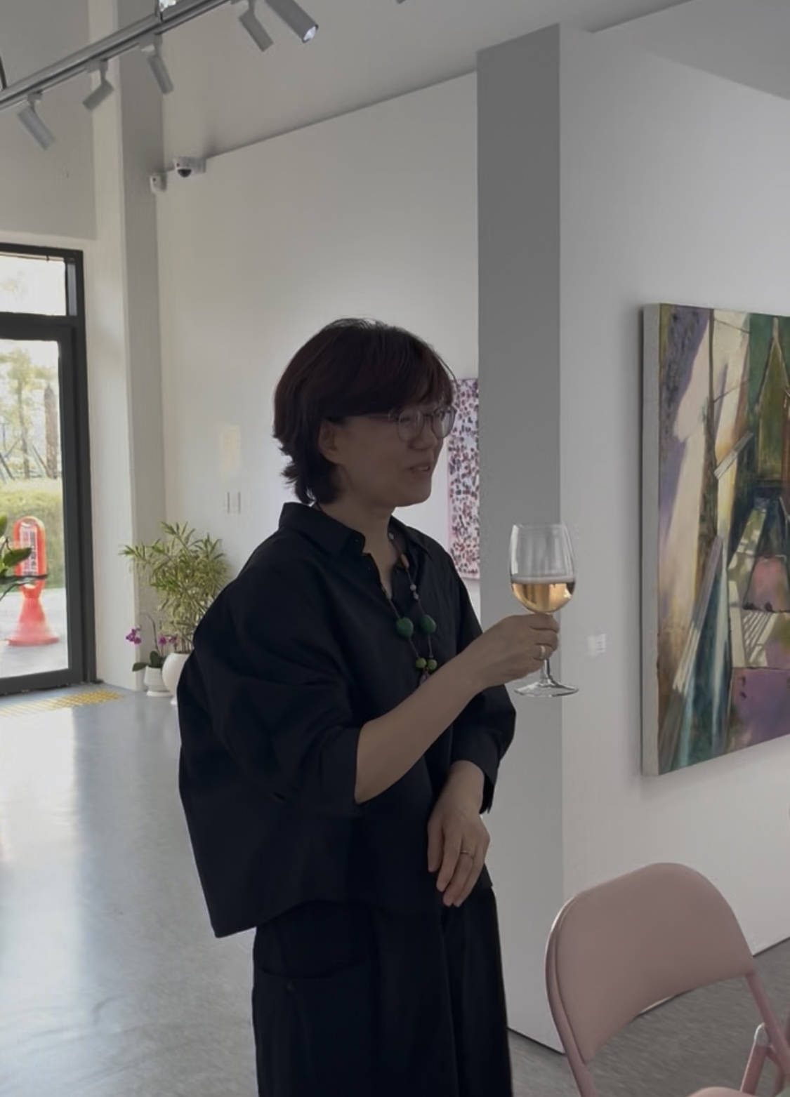 인간 주체를 중심으로 해서 펼쳐지는 조망적인 관점, 즉 원근법의 관점을 버리고 오로지 최대한 정면성을 추구함으로써 인간을 아예벗어나고자 합니다. 그럼으로써 표현하고자 하는 것은 순수한 색감각의 세계이며, 이러한 회화적 표현은 접사의 시선을 활용해서 집의 부분을 확대함으로써, 집과 인간 간의 도구적인 관계를 제거하고 순수한 색과 사물의 감각적인 관계를 한껏ㄷ 드러내고자 합니다. 집을 소재로 하지만, 오래된 집, 사람이 사는 관념속의 '집'의 개념은 아니며, 지붕과 담, 하늘과 지면 등 맞닿은 공간과 면,선,색을 봅니다. 면을 분할하고 필드페인팅 기법을 사용 하였으며, 파스텔 톤으로 색이 차분하게 가라앉아 있다.