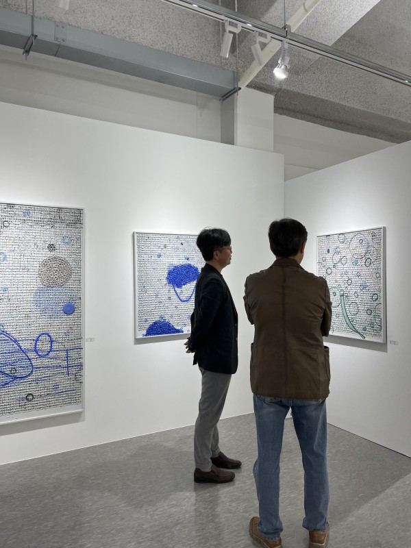 김형길 작가는 홍익대학교 서양학과 동대학원을 졸업하고 단순한 종이상자를 넘어, 존재와 연결, 기억과 감정을 동시에 보여준다. 작은 조각 하나하나가 의미를 갖고 모여 하나의 세계를 이루는 모습을 보면서, 일상과 삶을 다시 바라보는 시간을 가졌다.실재와 환영 그리고 실제적인 찰라가 공존하는 무대이다. 일상 속에서 경험으로 접하는 대상이나 모호한 형상, 혹은 내재 되어 있던 통영의 바다, 섬, 다양한 생명체들이 심안(心眼)으로 들어오면 때로는 주체적인 시점과 타 시점으로 응시를 경험하게 된다. 순간, 즉흥적인 공명 속에 대상은 선이나 면의 형식으로 감각이나 심층으로 느껴지는 단순한 형상만을 남기게 되고 대상 너머의 모든 것은 여백으로 변한다. 이러한 변화되는 과정 속에서 한국전통 회화의 여백에서 느꼈던 경이로운 파동의 세계와 같이 낯설음을 경험하게 된다. 이 파동들은 작품 안으로 들어와 여백에서 마치 환영과 같은 흔적들을 남기고 또 작은 종이상자 조각들에 의해 진동의 연결망으로 공간화되어 채워진다. 이러한 과정은 더 확장된 세상의 많은 놀라운 생명성을 교감하게 되며, 존재를 존재하게 하는 타력(他力)과 관계와 관계의 유기성을 끌어내는 작업으로 형성된다.